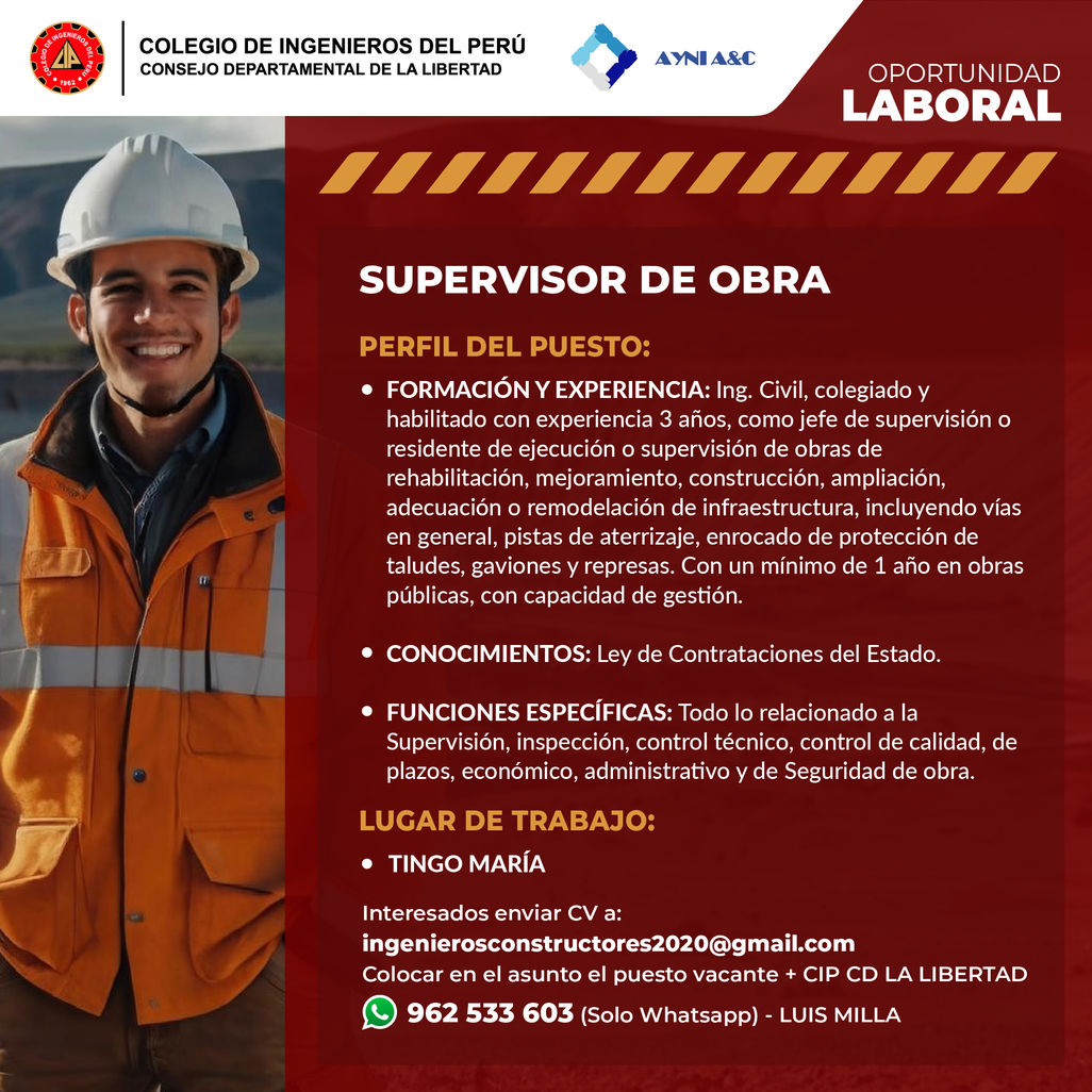 𝐂𝐎𝐍𝐕𝐎𝐂𝐀𝐓𝐎𝐑𝐈𝐀 𝐋𝐀𝐁𝐎𝐑𝐀𝐋 - Supervisor de obra
