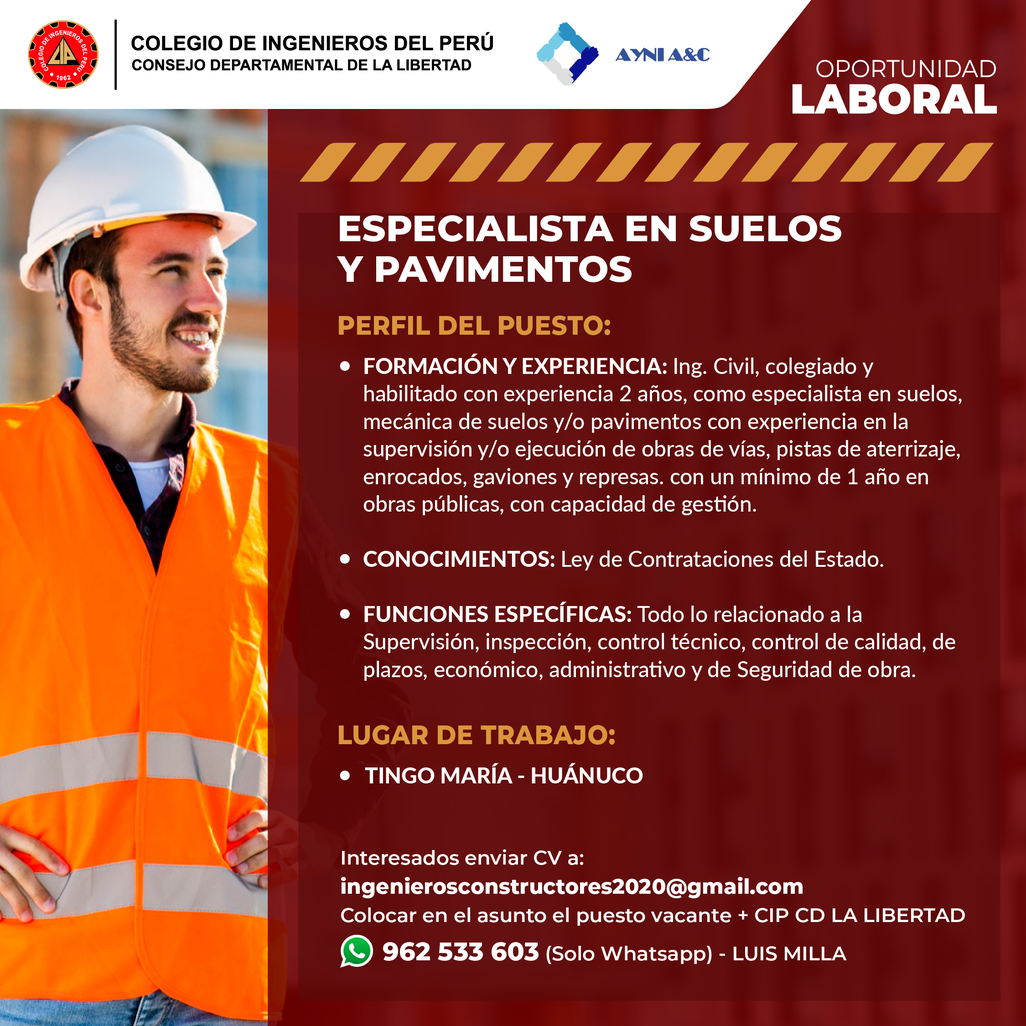 𝐂𝐎𝐍𝐕𝐎𝐂𝐀𝐓𝐎𝐑𝐈𝐀 𝐋𝐀𝐁𝐎𝐑𝐀𝐋 - Especialista en suelos y pavimentos.