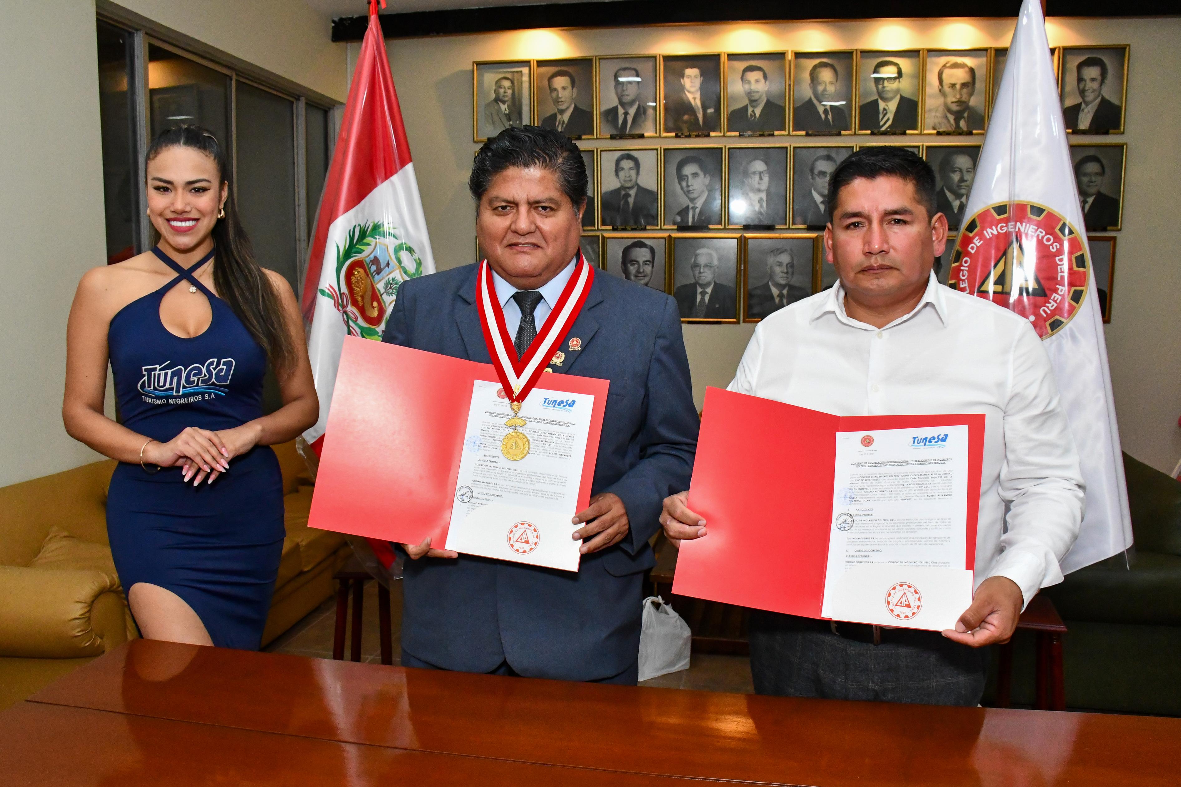 El CIP-CDLL firmó un importante convenio con Tunesa Express presidido por nuestro decano Ing. Enrique Luján Silva y el Sr. Robert Negreiros Pizan, Gerente General de Turismo Negreiros S.A.