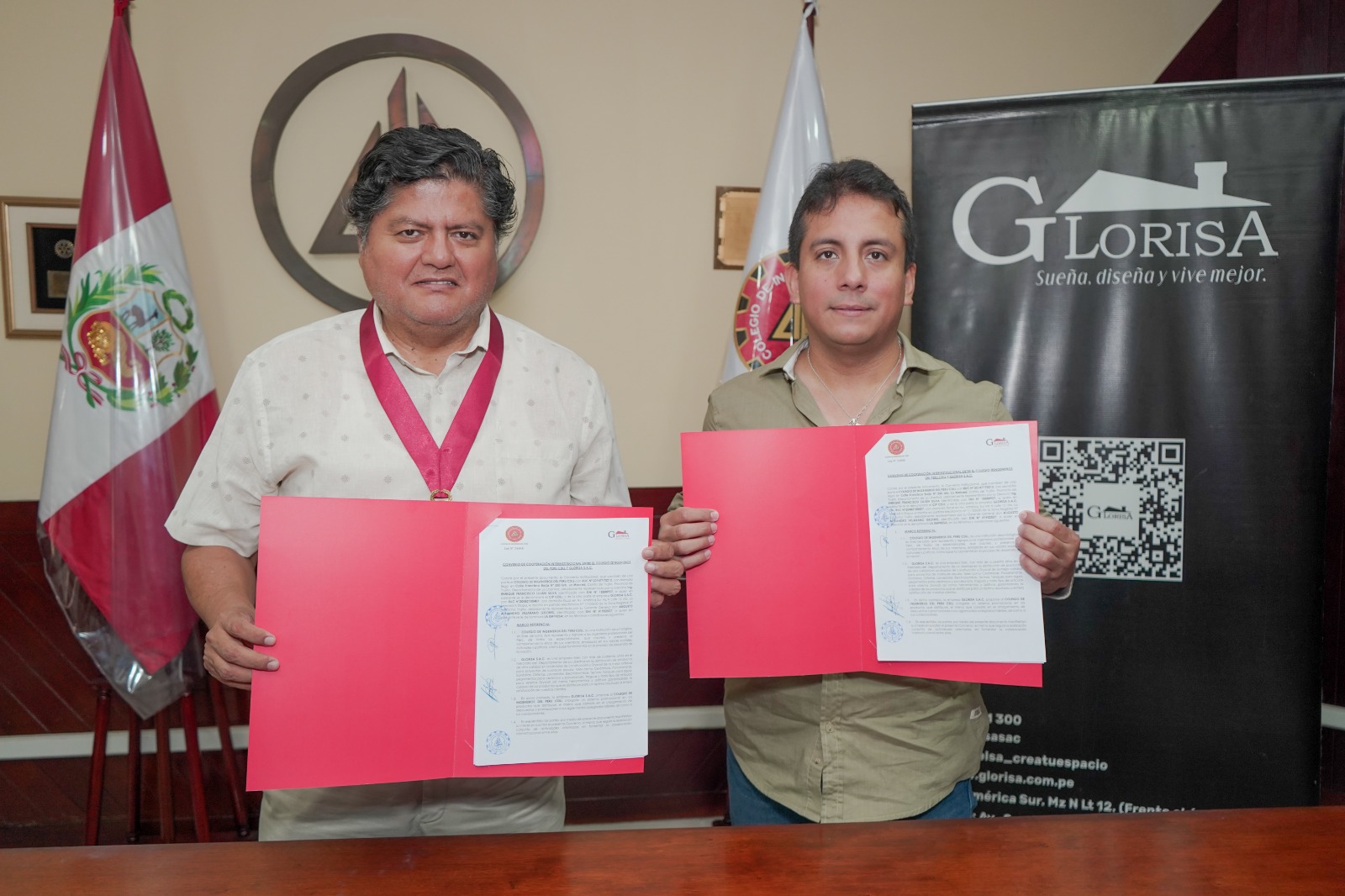 Durante la firma del convenio estuvieron presentes el decano CIP, ing. Enrique Luján Silva, y el ing. Alejandro Vejarano Geldres, Gerente General de GLORISA S.A.C.